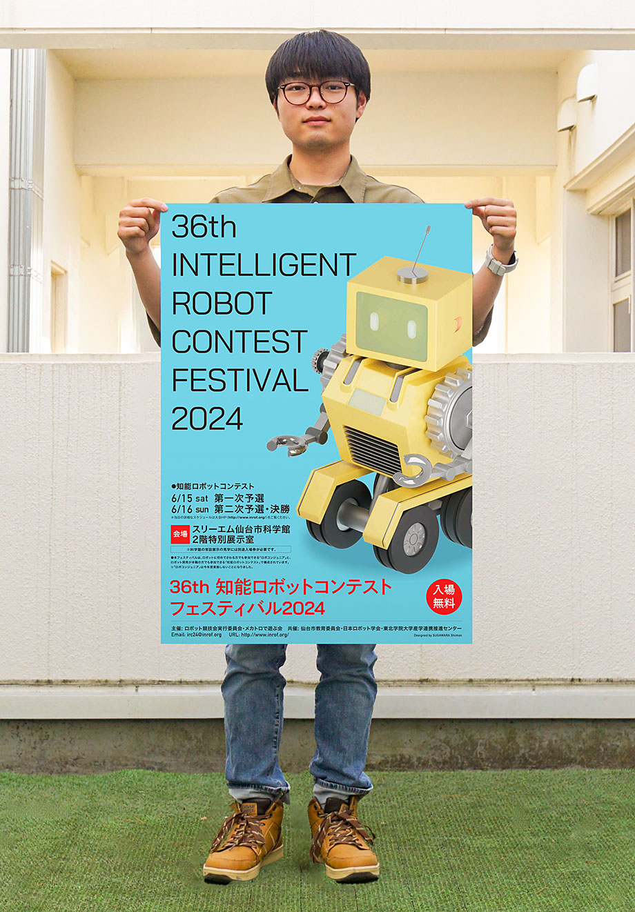 第36回 知能ロボットコンテスト2024のポスターデザインを、産業デザイン学科3年 菅原 志門くんが担当しました