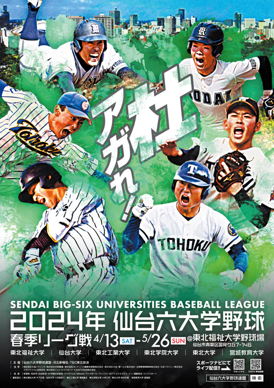 2024年度 仙台六大学野球春季リーグ戦のポスターを、産業デザイン学科4年 髙橋沙奈さんが担当しました。