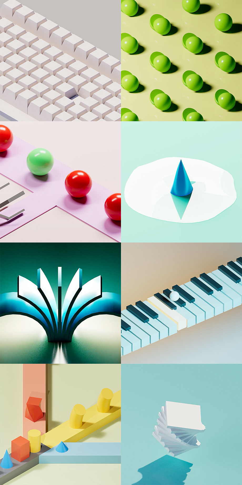 3DCGで使用されるプリミティブオブジェクトの動きのみで、それぞれがチョイスした動詞に限定した言葉(わらう/あるく/おどろく/とぶ/よける/たたく…など)を表現しています。
