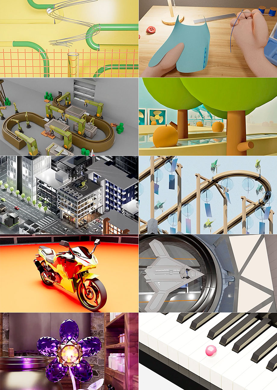 生産という言葉をもとに定義した「難解な構造・状況・機構・システム・流れetc…」を、わかりやすい形状(=モデリング)や動き(=モーション)をベースに映像化しました。