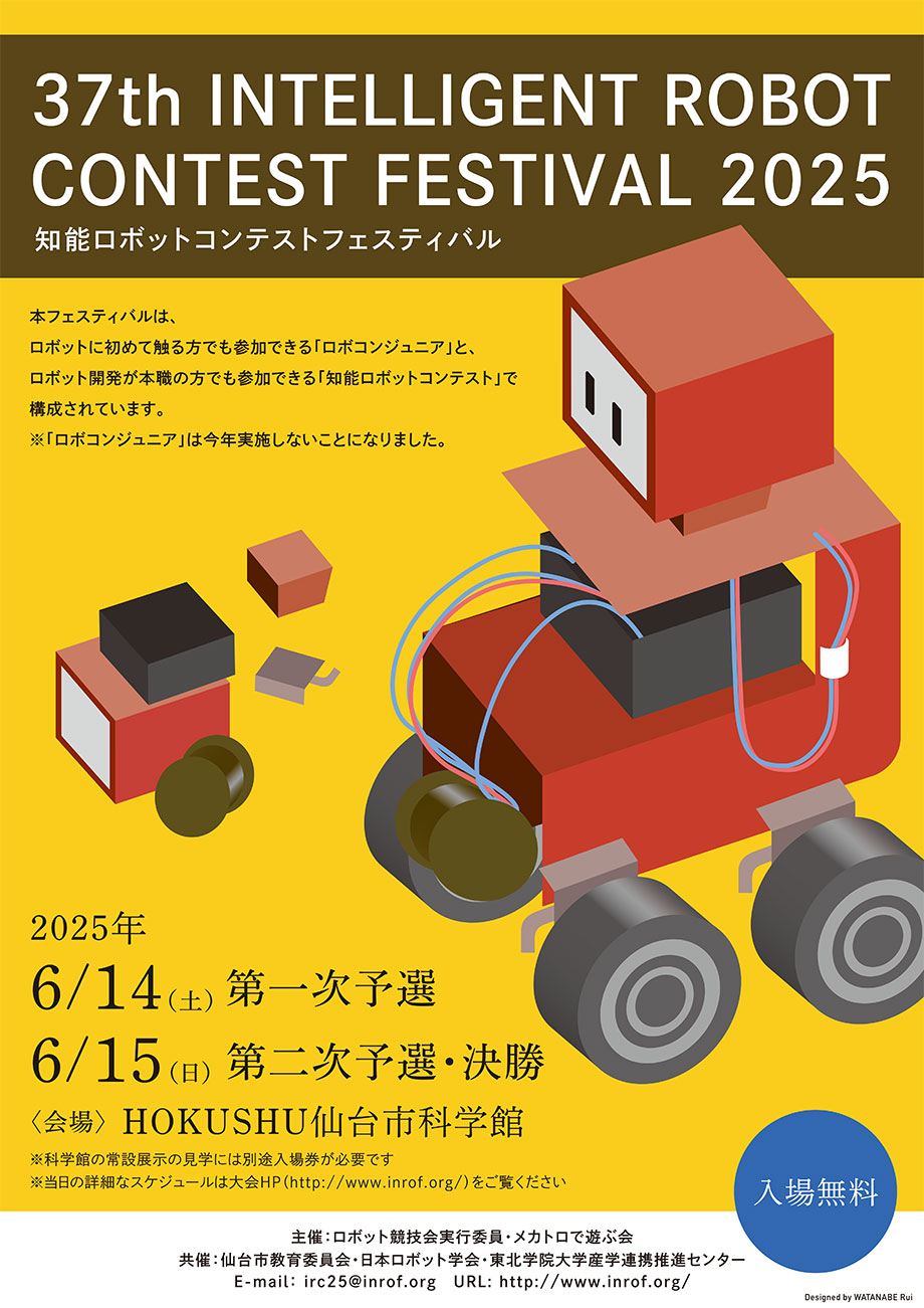 2025年6月14日〜15日にスリーエム仙台市科学館にて開催される、第37回 知能ロボットコンテスト2025(電気電子工学課程 藤田豊己研究室が運営に関わっています)のポスターデザインを、産業デザイン学科3年 渡邊 桃衣さんが担当しました。