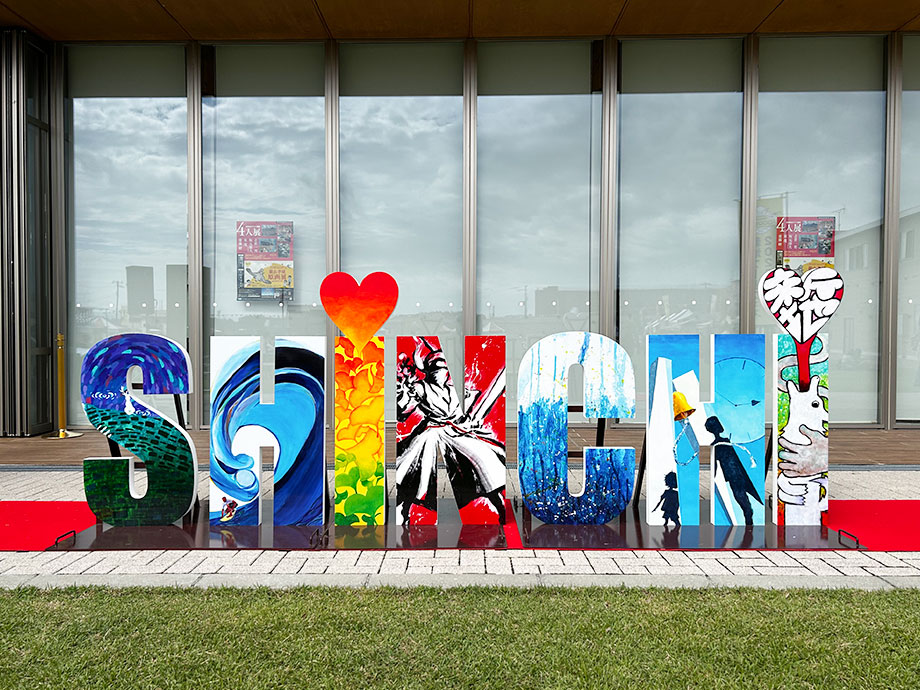 10月4日(土)、ビッグサインの除幕式が新地町文化交流センター「観海ホール」前で行われました。今後ビッグサインは、新地町で開催されるイベントで展示されます。