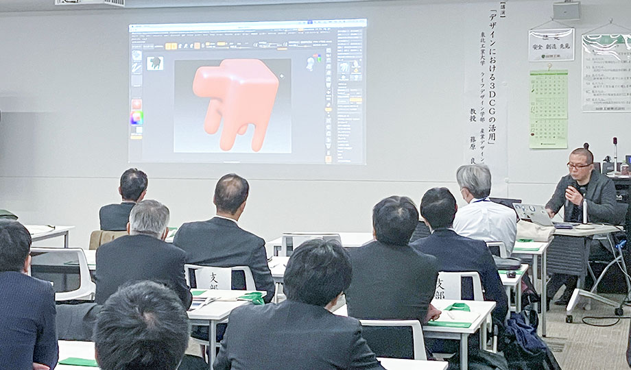 デザインのさまざまな分野で活用されている「3DCG」について、ビジュアルデザインに関連するトピックを中心に研究室の事例などについて解説しました。また、3Dモデリングの制作実演を行いました。