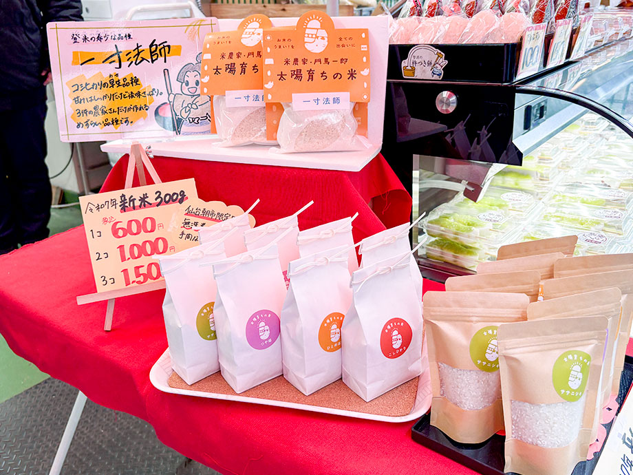 篠原研究室・合同会社一源・宮城県中小企業団体中央会の共同プロジェクト(「東北工業大学 × 合同会社一源 × 宮城県中央会 ~仙台朝市でコロナ後に増加した観光需要の獲得検証~」)として取り組んだ、令和7年度産・新米パッケージが、2025年11月末に仙台朝市『登米っ子一源』の店頭にてお披露目されました。