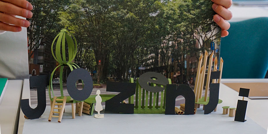 エキスパートデザイン計画および同実習A:UXデザイン課題(3年選択/担当教員:堀江 政広 教授)において、仙台市定禅寺通エリアから新たな文化の潮流を生み出すプロジェクト『JOZENJI STREET STREAM』にフォトスポットコンテンツを提案をする中間発表が2021年6月6日(火)に行われました。