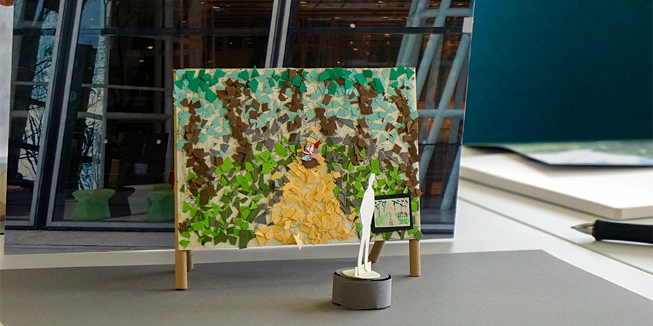 企画運営者であるユーメディアの担当者・デザイナーに対して、「サステナブルな暮らし」「エコロジー」「SDGs」をテーマにしたフォトスポットのアイデアを中間発表しました。発表後の質疑では作品制作の意図や詳細に関するやりとりや、改善に向けた的確なアドバイスをいただきました。今後は6月29日(火)の成果発表会に向けてアイデアをブラッシュアップしていきます。