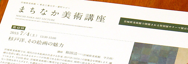 宮城県美術館と東北工業大学一番町ロビーが共催する「まちなか美術講座」のチラシを、篠原研究室4年生の長尾 菜穂美さんがデザインしました。宮城県美術館や本学一番町ロビー、学内各所に設置してあります。